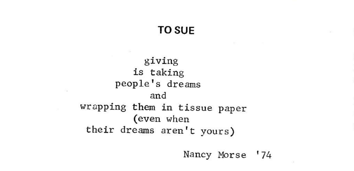 Thank you for all your kindness and love, not just now but during these past two years. Our Aunt Betsy — Mom’s sister — came across this poem Mom wrote when she was in high school.